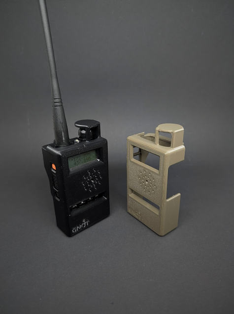 Front cover for Baofeng UV-5R radio. It prevents unintended button presses, and covers keypad. It has cutouts for channel change, headset and right side buttons. It helps to maintain low light profile.